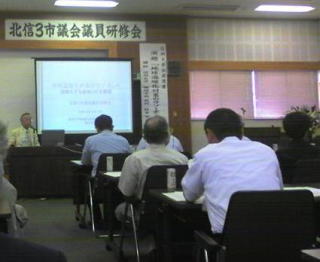 10)議員研修会等 @平成19年7月13日 於:中野市役所 北信3市議会議員研修会開催され、「地球温暖化対策のウソ・ホント」と 題して、信大の鈴木栄二教授の講義を受講するため、3市の議員が参集 しました。来賓として青木一中野市長が、開催地市長として開講にあたり あいさつをされました。 講義内容は、4.【自主研究:須坂の防災と治安】に記載。 ![]() A平成19年7月13日 於:議会内第4委員会 福祉環境委員会主催の学習会に出席して、国民健康保険についての、 新制度のしくみについて学びました。 B平成19年7月18日 於:佐久セントラルホテル 第47回東北信9市議会正副委員長研修会は、佐久市議会の主催により 佐久市で行われ、東北信9市(飯山市、中野市、須坂市、長野市、千曲市、 上田市、東御市、小諸市、佐久市)の正副議長、正副委員長が参加しました。 講演 「今 ここでわたしの“いのち”どう生かすか」 講師 曹洞宗大林寺住職 増田友厚 氏 こころに残った講演での名言:任にあたって他に譲り難し ![]() 研修会の一コマです 講演受講後に意見交換会で、私は上田市議会と須坂市議会との意見交換会の早期実現と中野市と須坂市との夏祭り共同歩調の可能性について、相手方の胸中を確かめました。 |