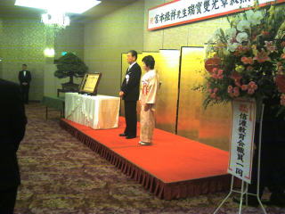 | 4)その他 ア)須坂商工会議所。平成20年9月6日。聴取者:30余名。 中心市街地活性化セミナー「頑張れ商店街」講師:品川区商店街連合会副会長、網島信一氏の講演 氏曰く:町興しの三大原則は、「熱い情熱をもつこと。汗を流すこと。身銭を切ること」と々熱弁された。 ![]() 商工会議所主催のセミナー イ) 境沢町若葉会の米寿祝賀会に出席。永田とらのさん、尾崎文代さんが受賞。 |
