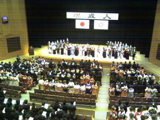 | 平成21年須坂市「祝・成人」は、平成21年1月11日午後2時より、メセナホールで執り行なわれ参列しました。本年成人を迎えられた須坂市の新成人は、561人でありました(教育委員会の資料から)。 長野県教育委員会の調査では、県内の該当者は24,087人(前年比 △125人)(内訳) 男性:12,163人・女性:11,924人であります。 【成人式に参列して毎年感じること】 成人式をこの時期に催すことが果たして適切であるのか疑問である。該当者が年度区切りであることからすれば、1年上の上級生の早生まれと、4月から12月生れの同級生が該当する。1月が年初めとすることもあり、国民の祝日の定めで1月の第2月曜日であること自体の定め方が時代とともにあやふやとなりつつある。 二つに、式典に臨んで、何と女性の服装の華美であることであるかである。本日の場内を2階席から臨めば、殆どが振袖姿であった。該当する561人の半数を仮に女性としよう。それぞれに事情があって全員が出席できないことは理解できるが、出席できない理由に、「振袖が調達できない」とすれば、それは余りにも悲しいことではないか。当日の写真を後日公表しますが、殆ど全員が「振袖」である。 県内81市町村の平成21年度成人式の実施予定が長野県(教育委員会)プレスリリースに掲載されている。参考までに掲載すると、
