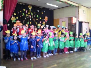 | (1) | 【保育園・小・中学校・教育委員会関係】 ☆12月21日 須坂保育園主催のクリスマス会に出席。サンタクロースも訪れて、園児らの年齢別に演じる7演目を保護者凡そ80名と共に観劇。感動の場面の連続でした。市議会議員、民生児童委員、主任児童委員が出席。 ![]() 保護者に練習の成果を披露する園児たち |